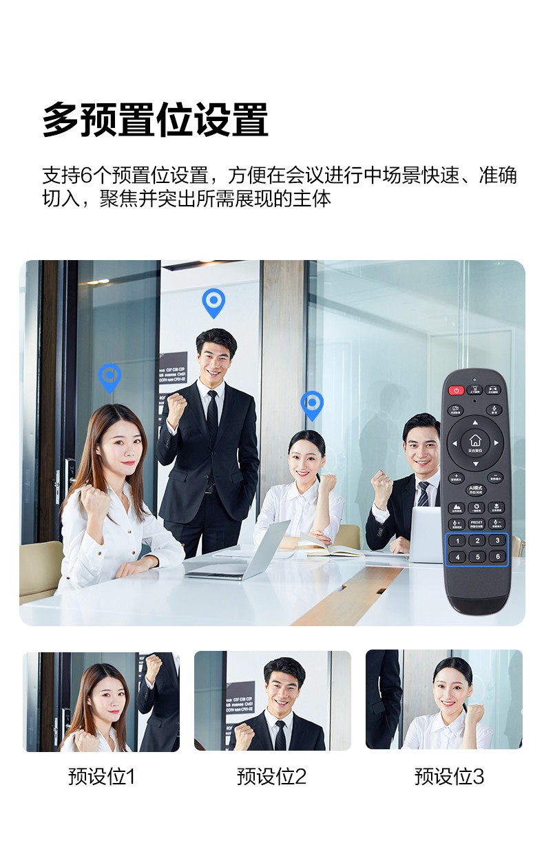 • 支持2.4G无线遥控控制/多预置位设置;